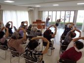 また、「つま先で、自分の名前を空中に書く」というワークを行ないました。右足ではひらがな、左足ではカタカナに挑戦です。ちょっとしたダンスにも見えるこの運動は、知らぬ間に腹筋を使っているらしく、全身がぽかぽかしてきました。