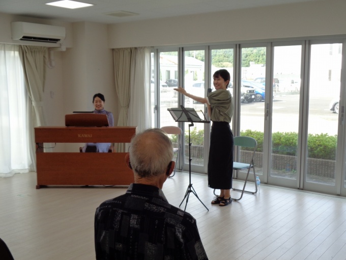 最後は平原綾香『ジュピター』が披露され、どこまでも伸びるかと思われる歌声と力強いピアノの、息の合った演奏にわーっ!と拍手喝采が沸き、「すごいねえ…」とため息が聞こえてきました。今日も大満足の歌声サロンでした。次回は11月です。みなさん風邪をひかないように、お元気でお過ごしくださいね!