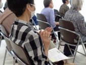続いて、脳トレをかねて「か」のところで拍手をするワークを行ないました。だいたい文頭にあるので、簡単だわと油断していると、「あるからよ」と不意を突かれます。あ!と思ってその後、警戒しながら歌うことになるのですが、じつは「か」は登場せず、「なあんだ…」と最後にホッとするみなさんでした。緊張と緩和を充分に楽しんでいただけた様子です。