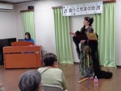 お見送りをするお二人にみなさん笑顔で声を掛けていました。「すごい声だねえ」「ピアノ、すてきね」「この衣装、さわってみてもいい?」などなど、いろいろな声が聞こえてきました。楽しいひとときをどうもありがとうございました!