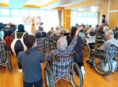 市内各所の復興公営住宅にて、みんなで歌う会を定期開催していますが、今日は特別版として、若林区荒井東にある特別養護老人ホーム成仁杜の里仙台へ「うたごえサロン」をお届けしました。この施設は2011年に若林区三本木地区で津波被災し、荒井東へ新設移転して今年で10年になります。