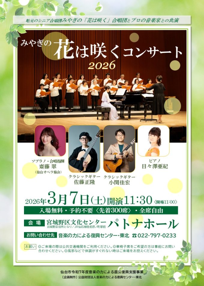 さあ、いよいよ来月はコンサート本番です。練習の成果を確かめに、どうぞいらしてください。